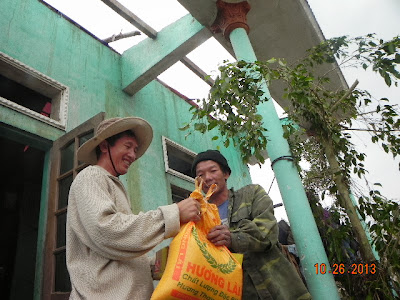 Hàng cứu trợ đã được Đoàn trao tận tay cho đại diện 316 gia đình đang thiếu đói tại Giáo xứ Trung Quán ngay sau Thánh lễ sáng ngày 27/10/2013 do Cha Phaolô chủ sự.