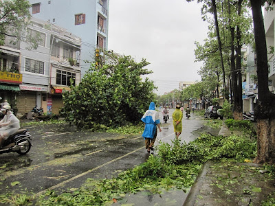 Sáng nay, 15/10/2013, sau khi kiểm tra toàn bộ khu vực Nhà thờ, Nhà xứ và cùng nhau giăng cáp để giữ cho một số cây lớn trên sân Thánh đường khỏi bị đổ sập, chúng tôi cùng một số các bạn trẻ vòng quanh các Giáo họ thuộc Giáo xứ Thanh Đức để "khảo sát" những thiệt hại nếu có, sau một đêm dài cơn bão dữ Nari giật cấp 15,16 hoành hành khủng khiếp khi đổ bộ vào Đà Nẵng.